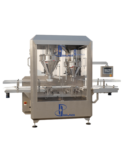 該設(shè)備是我公司在粉末罐裝領(lǐng)域長期實(shí)踐的基礎(chǔ)上,摒棄原有轉(zhuǎn)盤式喂罐設(shè)計(jì)理念,而全新設(shè)計(jì)的一款四工位罐裝機(jī)。雙排主輔雙頭充填系統(tǒng)和喂罐系統(tǒng),保證了高精度同時(shí)又去除了轉(zhuǎn)盤式喂罐系統(tǒng)清理不便的缺點(diǎn)。主要完成高精度充填計(jì)量工作??膳c其它設(shè)備配套組成整套罐裝流水線,適用于罐裝奶粉、蛋白粉、雞粉、葡萄糖、米粉、可可粉、固體飲料等。